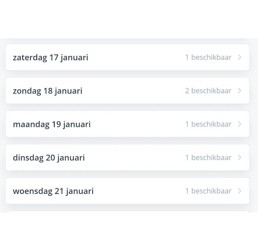 Vooralsnog is van zaterdag 17 tot woensdag 21 januari nog niet geheel gevuld.